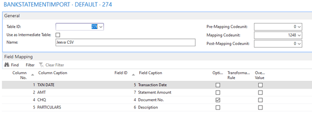Pre-setup to import bank statement to Microsoft Dynamics Navision